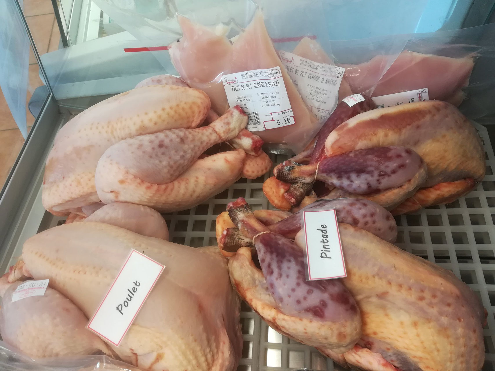 Prix au kg : Filets : 16.90€ ; Cuisses : 12.90€ ; Ailerons : 7.90€ ; Pilons poulet : 11,90€