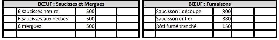 | Poule / Coq entier | 1,5kg à 3kg | |
