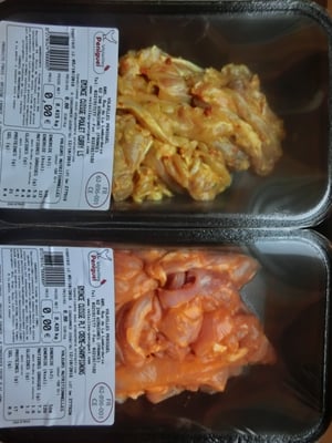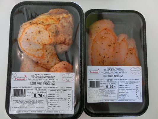 Emincés ou Aiguillettes de poulet provençal, curry, chasseur ou petits légumes (selon la saison) |